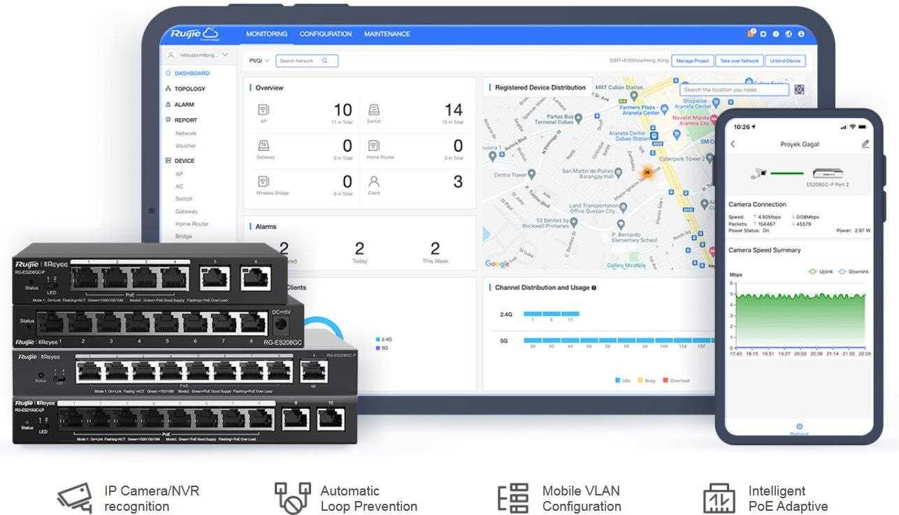 Registrace dealerské ceny: https://docs.google.com/forms/d/1sWwsswsbBk36eZx4CJrfl47qUvrORQyYz7kMjrt2f_c/prefill Popis produktu Inteligentní cloudově i přes webové rozhraní spravovatelný smart desktop switch RG-ES205GC od značky Ruijie, nabízí cenově efektivní řešení s 5 Gigabit LAN porty. Tento kompaktní přepínač je ideální pro síťové aplikace, které vyžadují výkon a spolehlivost. Co se výčtu funkcí týče, switch nabízí tichý chod bez ventilátorů, podporu až 16 VLAN, DHCP snooping, testování kabelu a ochranou proti zakruhování. Klíčové vlastnosti • 5× 10/100/1000 Mbps LAN porty • Kvalitní provedení, kovové šasi • Bez venilátoru • Nízká spotřeba - max. 3 W • Správa přes webové rozhraní a cloud • Celoživotní správa na Ruijie Cloud kdykoli a kdekoli • Rozpoznávání IP kamer - jedinečná hodnota pro CCTV síť • Automatická prevence proti zakruhování Obsah balení • Zařízení • Napájecí adaptér 5 V/1 A Technické parametry Konektory a rozhraní Rychlost LAN:(5) 10/100/1000Mbps Napájení Typ napájení:DC konektor Max. spotřeba energie [W]:3 Napájení přes konektor/svorkovnici:5V / 1A Fyzické charakteristiky Provedení:Desktop Ventilátory:Bez ventilátoru Šasi:Kovové Tlačítka:Reset Provozní teplota [°C]:0 až 40 Šířka [mm]:119 Výška [mm]:24 Hloubka [mm]:75 Obecné Rychlost přepínání [Gbps]:10 Tabulka MAC adres:2000 Rychlost předávání paketů [Mpps]:7,4 Software Web management:Ano Management:Webové rozhraní, Ruijie cloud Funkce:VLAN, DHCP snooping Výchozí IP adresa:10.44.77.200 Výchozí jméno a heslo:Nastavuje se při prvním spuštění.