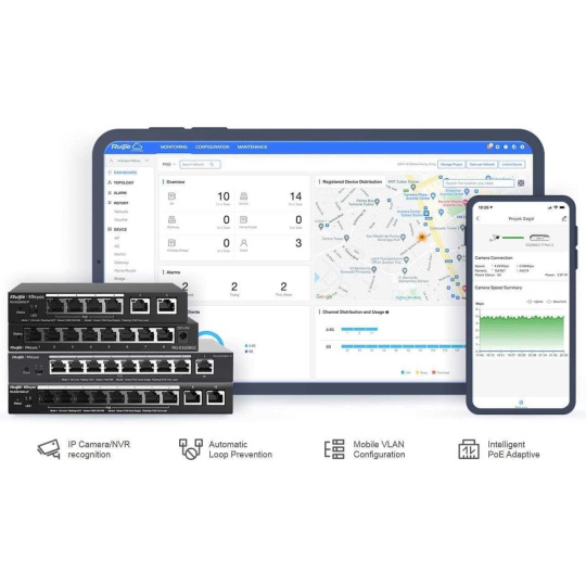 Registrace dealerské ceny: https://docs.google.com/forms/d/1sWwsswsbBk36eZx4CJrfl47qUvrORQyYz7kMjrt2f_c/prefill Popis produktu Inteligentní cloudově i přes webové rozhraní spravovatelný smart desktop PoE switch RG-ES210GC-LP od značky Ruijie, nabízí cenově efektivní řešení s 10 Gigabit LAN porty z čehož 8 portů podporuje 802.3af/at PoE s celkovým PoE budgetem 70W. Tento kompaktní přepínač je ideální pro síťové aplikace, které vyžadují výkon a spolehlivost. Co se výčtu funkcí týče, switch nabízí tichý chod bez ventilátorů, podporu až 16 VLAN, DHCP snooping, testování kabelu, ochranou proti zakruhování a v rámci PoE možnost použití až na vzdálenost 250m při snížení linkové rychlosti na 10 Mbps. Klíčové vlastnosti • 10x 10/100/1000 Mbps LAN porty • 8x 802.3af/at PoE - max. 30W/port, PoE budget 70W • Kvalitní provedení, kovové šasi • Bez venilátoru • Nízká spotřeba - max. 10 W • Správa přes webové rozhraní a cloud • Celoživotní správa na Ruijie Cloud kdykoli a kdekoli • Rozpoznávání IP kamer - jedinečná hodnota pro CCTV síť • Automatická prevence proti zakruhování • Podpora Long Range PoE na vzdálenost 250m Obsah balení • Zařízení • Napájecí adaptér 54V/1.5A Technické parametry Konektory a rozhraní Rychlost LAN:(10) 10/100/1000Mbps Napájení Typ napájení:DC konektor Typy PoE:PoE-Out (pouze) Podporované PoE-Out standardy:802.3af, 802.3at Počet PoE Out portů:8 PoE budget [W]:70 PoE na vzdálenost až 250m:Ano Max. spotřeba energie [W]:10 Napájení přes konektor/svorkovnici:54V / 1,5A Fyzické charakteristiky Provedení:Desktop Ventilátory:Bez ventilátoru Šasi:Kovové Tlačítka:Reset Provozní teplota [°C]:0 až 40 Šířka [mm]:202 Výška [mm]:28 Hloubka [mm]:108 Obecné Rychlost přepínání [Gbps]:20 Tabulka MAC adres:4000 Rychlost předávání paketů [Mpps]:14,9 Software Web management:Ano Management:Webové rozhraní, Ruijie cloud Funkce:VLAN, DHCP snooping Výchozí IP adresa:10.44.77.200 Výchozí jméno a heslo:Nastavuje se při prvním spuštění.