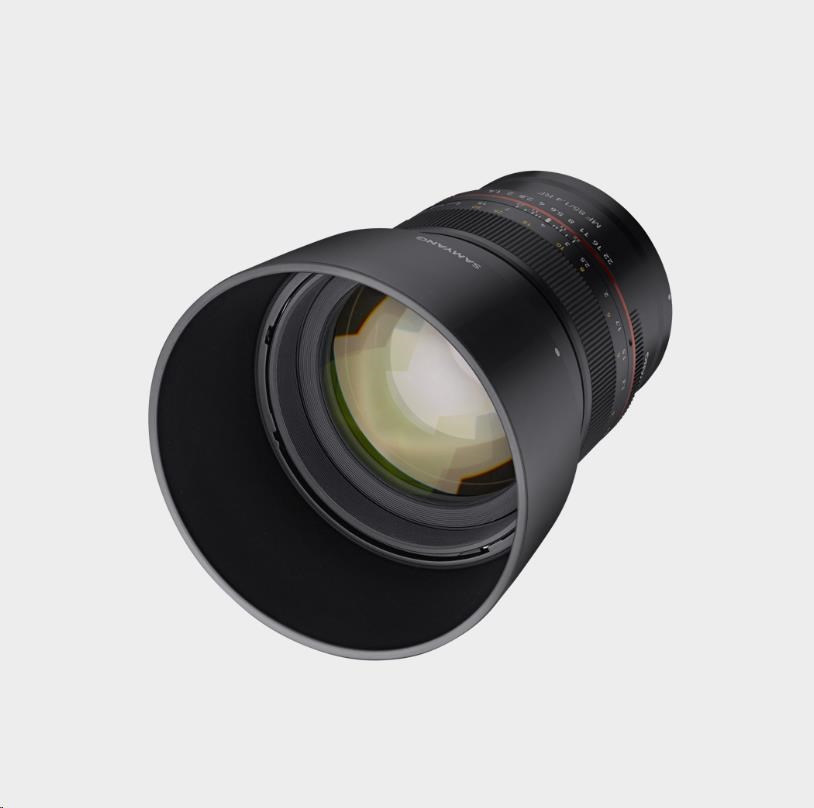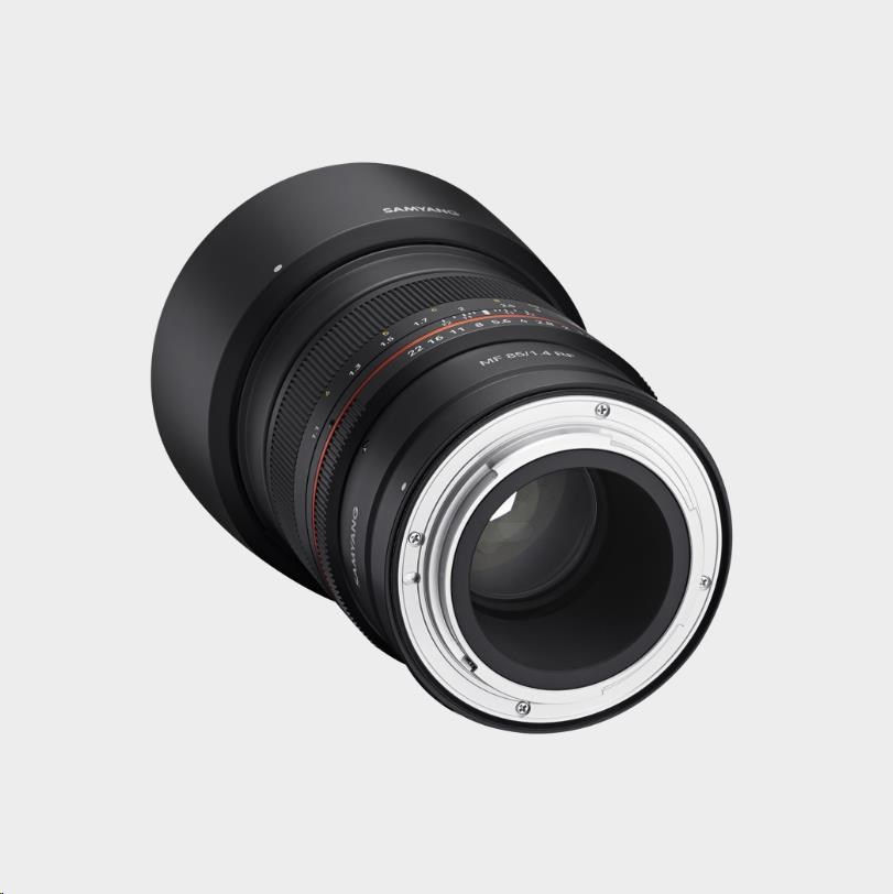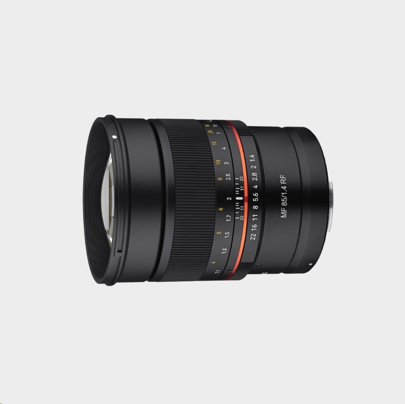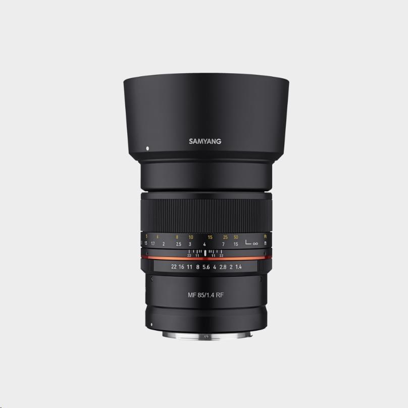 Samyang MF 85 mm f/1,4 RF fits Canon's mirrorless cameras in the R-Series and offers manual focusing and aperture setting. The lens is solidly built and equipped with weather seals that prevent moisture and dust from reaching the inside.