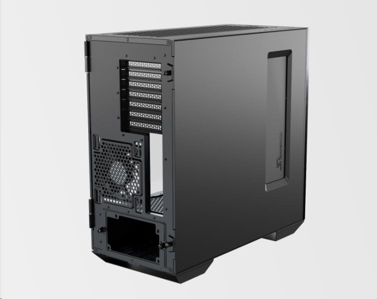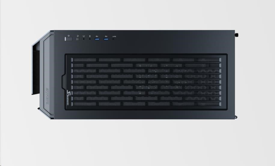 The state-of-the-art Seasonic SYNCRO Q7 Series is a mid-tower ATX chassis that features an aluminum body and a tempered glass panel on one side and the Seasonic SYNCRO CONNECT Module on the other. This setup can accommodate powerful hardware and provides versatile cooling and ventilation options. The SYNCRO CONNECT Module functions as a cable management hub, to which the components are directly connected with generally shorter cables. This setup simplifies cable routing and allows for a clean look on both sides of the case.
