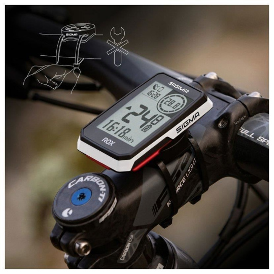 Cyklocomputer ROX 2.0 lze snadno namontovat přímo na řídítka. Montáž kabelů a čidel není nutná. Po zapnutí vyhledá ROX 2.0 během několika málo sekund polohu cyklisty pomocí GPS a GLONASS. V kombinaci s intuitivním ovládáním dvěma tlačítky je možné okamžitě zahájit jízdu.