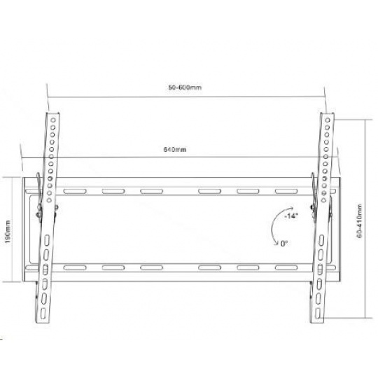 Levný nástěnný držák pro zavěšení všech typů plochých televizorů s úhlopříčkou 37-70 palců, možnost náklonu, nosnost 55kg     Ekonomická verze sklopného držáku pro zavěšení všech typů a značek plochých televizorů (LCD, LED, plazma, OLED, 3D, Curved, QLED) s úhlopříčkou 37 až 70 palců. Držák umožňuje korekci náklonu, je možné ho zatížit až 55kg televizorem. Zajištění Tv proti vysazení, kvalitní ocelová konstrukce, aretace sklonu. Barevné provedení černé, záruka 3 roky.     Vyklápěcí držák na LCD LED plazma Tv 37-70 palců Fiber Mounts M6C05      Technické údaje:  nosnost 55kg podporuje VESA standardy 100x100 až 600x400 na všechny typy a značky plochých televizorů doporučená úhlopříčka Tv 37-70" možnost náklonu až 0°-14° vzdálenost od stěny 25mm zajištění Tv proti vysazení ocelová kontrukce výborná kvalita instalační materiál barevné provedení černé záruka 3 roky    Držák podporuje VESA standardy:  VESA 100x100 VESA 200x100 VESA 200x200 VESA 300x200 VESA 300x300 VESA 400x200 VESA 400x300 VESA 400x400 VESA 600x400.