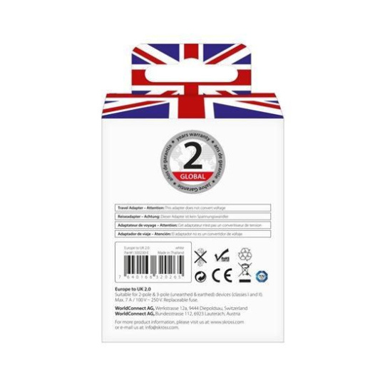 SKROSS cestovní adaptér UK pro použití ve Velké Británii, typ G