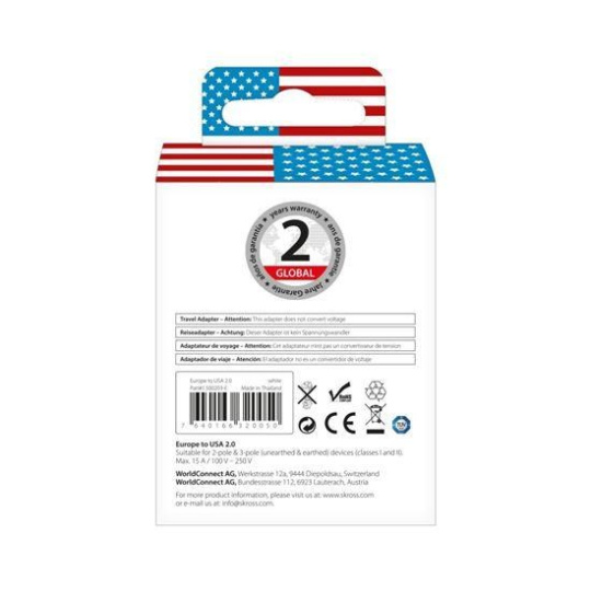 SKROSS cestovní adaptér USA pro použití ve Spojených státech, typ B