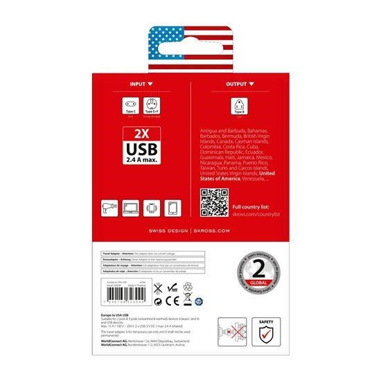 SKROSS cestovní adaptér USA USB pro použití ve Spojených státech, typ B