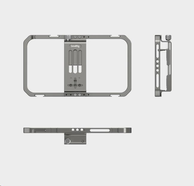 Více otvorů se závitem 1/4 lze použít k upevnění stativu, jako je SmallRig Aluminium Mini Tripod 2429, horní rukojeti, jako je SmallRig Mini Top Handle for Lightweight Cameras (1/4"-20 Screws) 2821, boční rukojeti, jako je SmallRig Aluminium Side Handle for Smartphone Cage 2424.