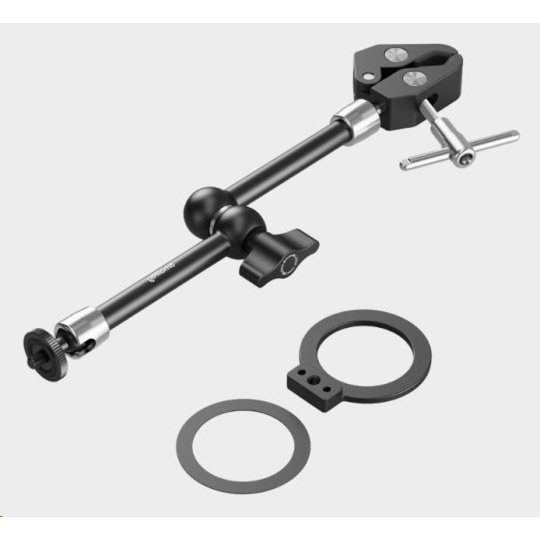 .Kouzelné rameno využívá vroubkovaný šroub s palcem pro nastavení bez použití nářadí a další zajišťovací otvor umožňuje další utažení pomocí imbusového klíče.