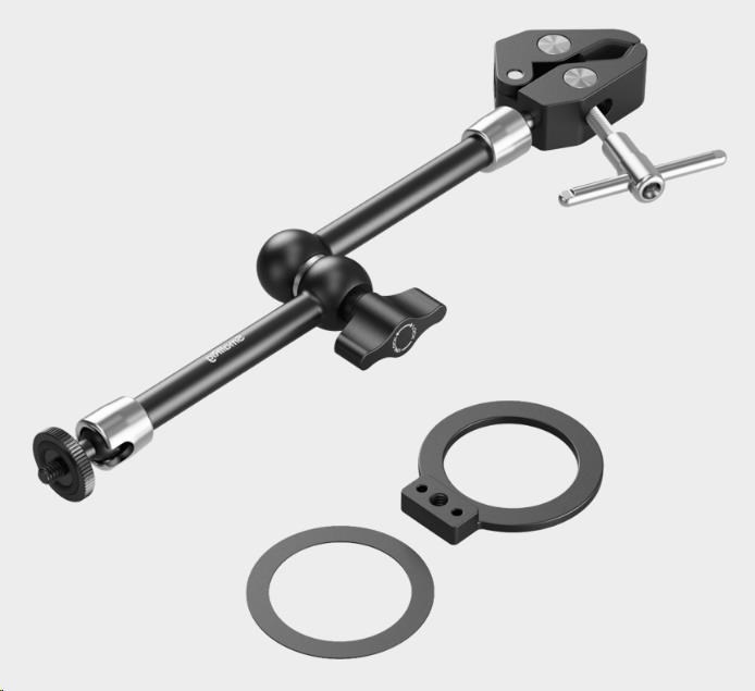 .Kouzelné rameno využívá vroubkovaný šroub s palcem pro nastavení bez použití nářadí a další zajišťovací otvor umožňuje další utažení pomocí imbusového klíče.