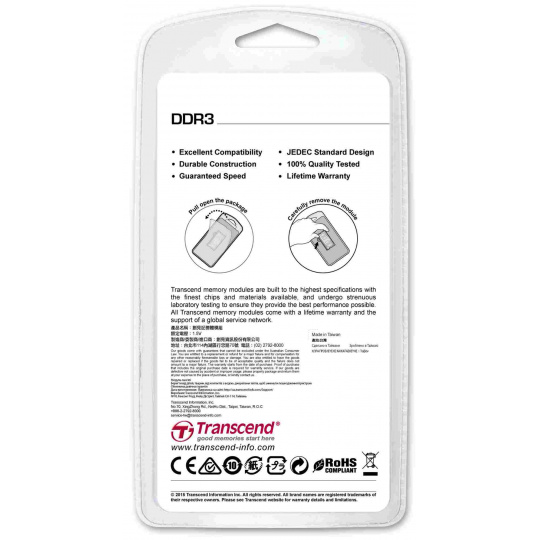 Engineered from the ground up specifically for use in portable computers, Transcend™s notebook modules use the highest grade, brand-name DRAM chips available, which are selected only after passing of our stringent performance and stability evaluation, including rigorous testing in extreme environments. These compact memory modules offer an unrivaled level of compatibility and stability that far outclasses the competition. Suitable for use in notebooks of virtually every brand and type, Transcend memory modules are at the heart of many high-quality, extremely reliable computers. Moreover, to assure ultimate cross-platform compatibility and stability, each module is tested in many different system configurations that include mainstream notebooks and popular software programs.
