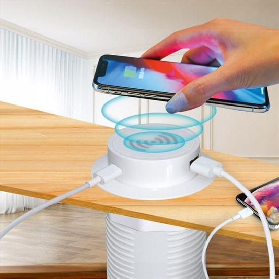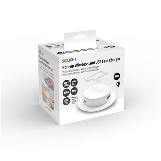 Solight bezdrátová 15W + USB A+C 20W PD výsuvná nabíječka, bílá