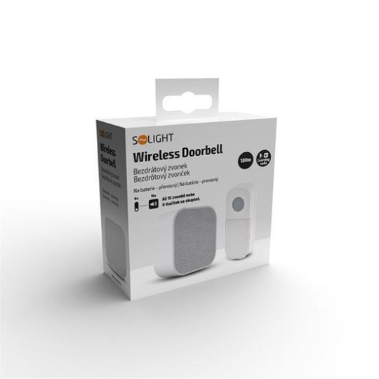 Solight bezdrátový zvonek, bateriový, 180m, bílý, learning code
