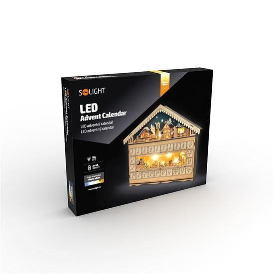 Solight LED adventní kalnedář - horská chata, 10x LED, 50x40cm, 2x AA