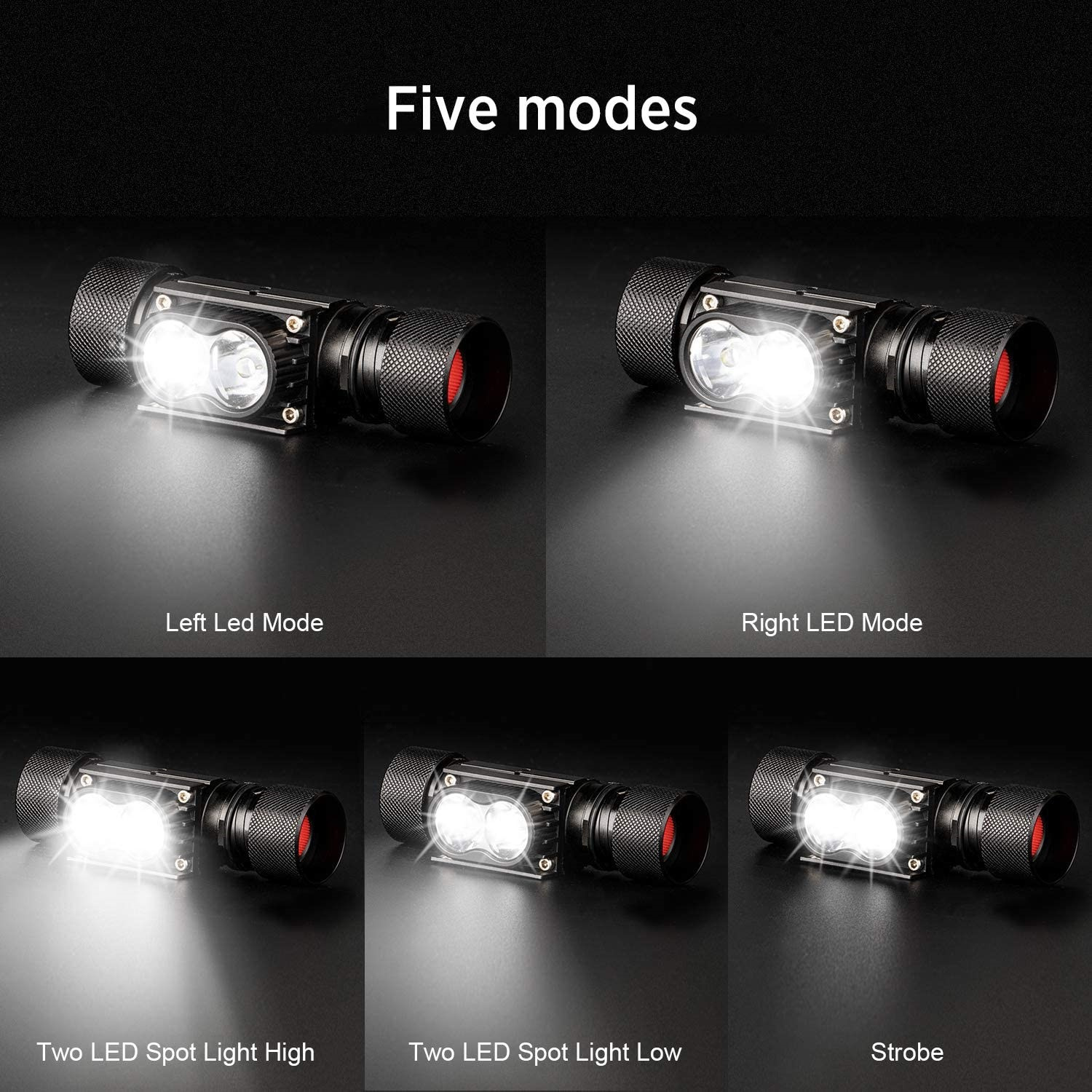 Nabíjecí LED čelová svítilna s vysokým světelným tokem a dvěmi výkonnými XPG LED diodami, svítivost: 650lm, 5 režimů svícení: pravá LED 100%, levá LED 100%, obě LED 100%, obě LED 50%, blikání, outdoorové užití (stupeň krytí IP44).... více