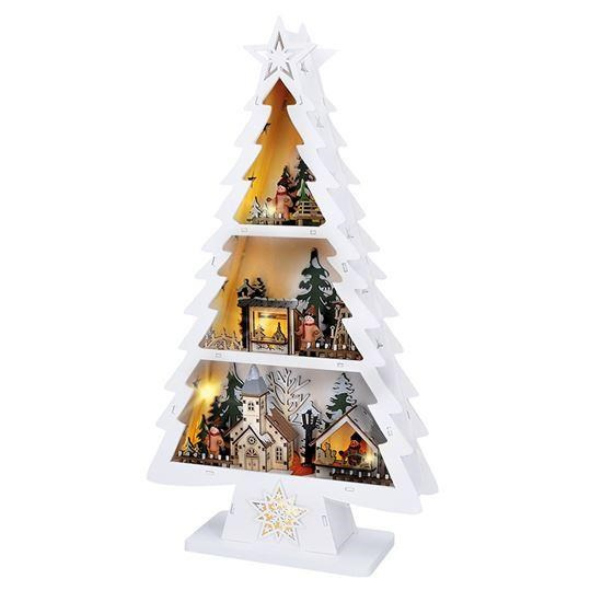 Dřevěný váčnoční stromekek s dekoracemi a LED osvětlením