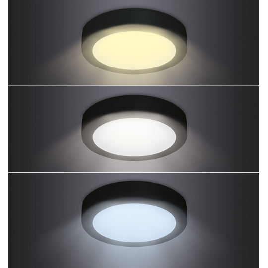 Solight LED mini panel CCT, přisazený, 12W, 900lm, 3000K, 4000K, 6000K, kulatý, černá barva