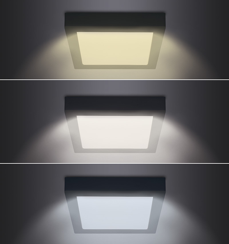 - panel disponuje speciálním LED zdrojem s přepínačem, který umožňuje nastavení teploty světla (chromatičnosti) 3000K, 4000K nebo 6000K.