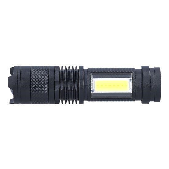 nabíjecí LED kapesní svítilna s USB konektorem svítivost: 100lm + 70lm (přední + boční) 3 režimy svícení: 100% přední , přerušované (blikání) přední, 100% boční outdoorové užití (stupeň krytí IP44) nastavitelný kužel světla (zoom) výdrž baterií min/max: 1hod./2hod. doba nabíjení: 2hod. baterie: 3.7V 400mAh Li-Ion napájení: USB konektor rozměry: 100 x 26mm barva: černá balení: display box 6ks.