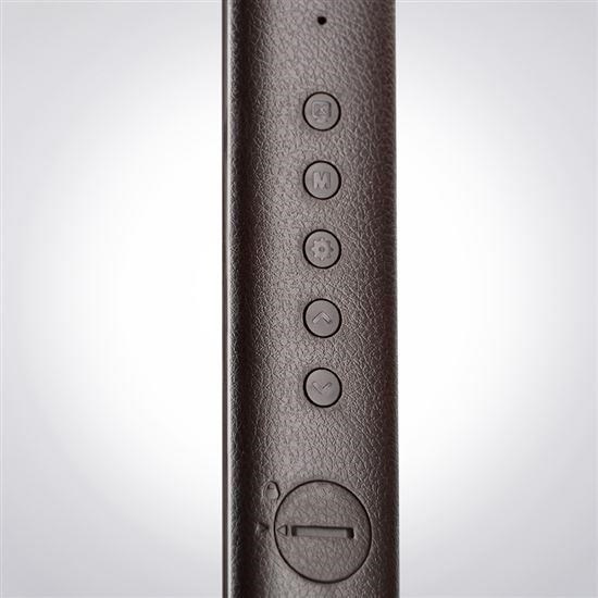 Solight LED stolní lampička s displayem, 9W, volba teploty světla, kůže, hnědá