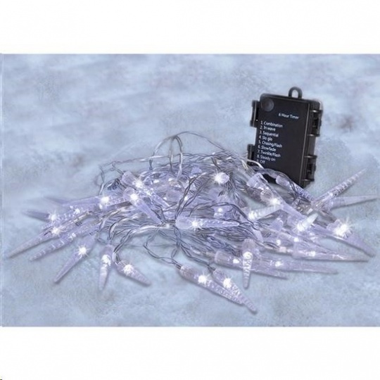 Solight LED venkovní rampouchy, 50LED, časovač, 8 funkcí, IP44, 3xAA baterie