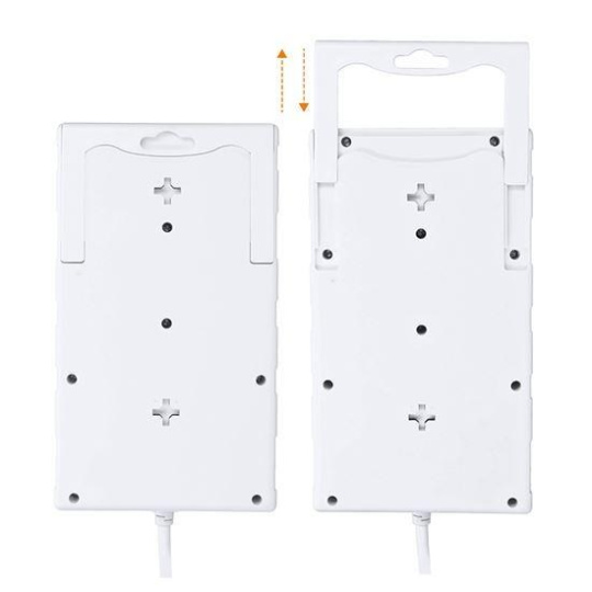 Robustní, dva metry dlouhý přívodní kabel poskytuje flexibilitu při umístění. Dvě oddělené zásuvky pojmou i větší napájecí adaptéry bez překážení ostatním zásuvkám. Výsuvný držák na zadní straně slouží k uspořádání kabelů, případně k zavěšení nebo přenášení. Nechybí ani montážní otvory pro pevné uchycení.