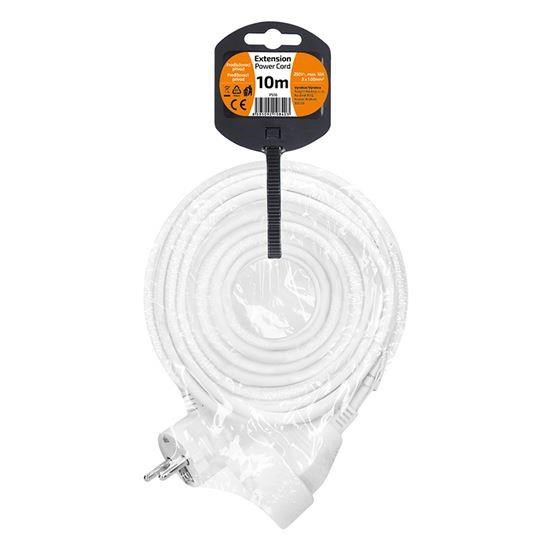 Kompaktní bílý prodlužovací kabel s délkou 10 metrů a jednou zásuvkou je ideální pro jednoduché prodloužení elektrické energie v domácnosti, kanceláři nebo dílně. Vhodný pro připojení samostatného zařízení mimo dosah pevné zásuvky.