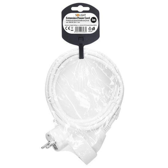 Solight prodlužovací přívod 3m, 1 zásuvka, 16A/3680W, PVC, bílý