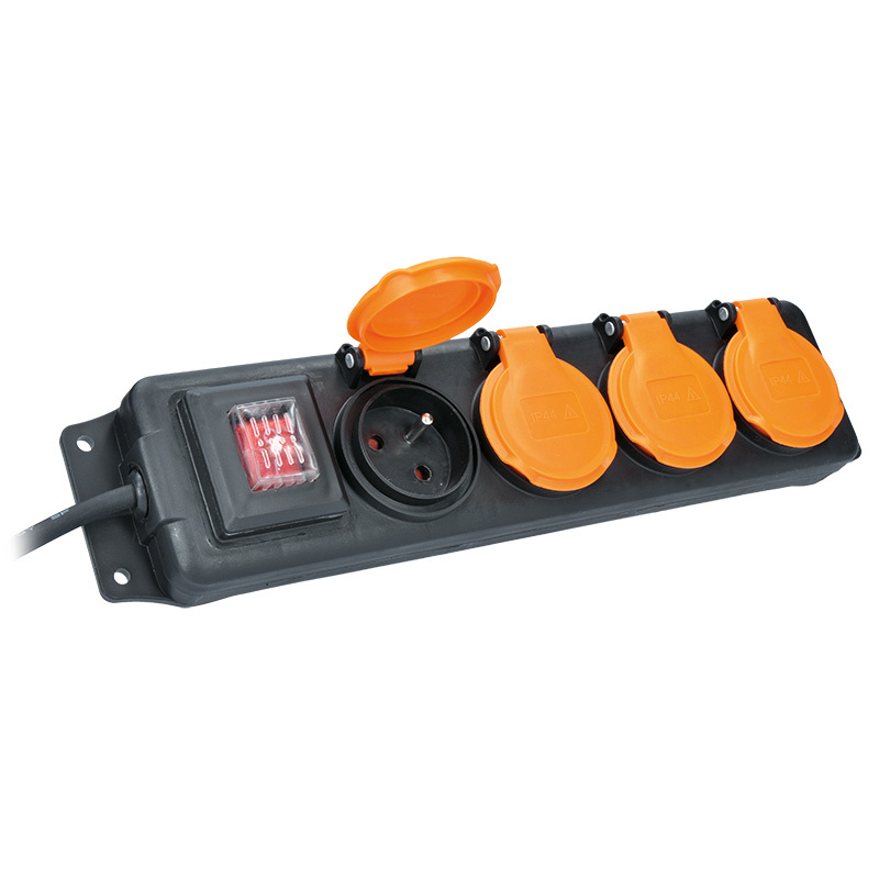 Gumový kabel, počet zásuvek: 4, průřez vodičů: 3 x 1,5mm2, typ kabelu: H05RR-F 3G, přímá vidlice, dětské pojistky, barva: černá.... více