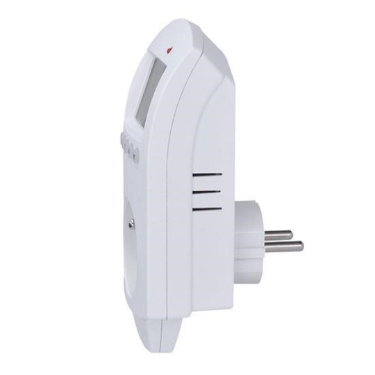 termostaticky spínaná programovatelná zásuvka pro vnitřní použití, spíná při dosažení nastavené teploty možnost nastavení různých režimu pro vytápění nebo chlazení (až 6 režimů pro 24h) možnost nastavení pro všední den a víkend časový spínač, umožňuje zásuvku zapnout nebo vypnout automatický režim/režim ručního nastavení přesnost měření teploty ±1°C rozsah nastavení teplot 5°C až 35°C vlastní spotřeba 0,3W krytí IP20 napájení: 230V/50Hz, max. zatížení 16A, 3680W.
