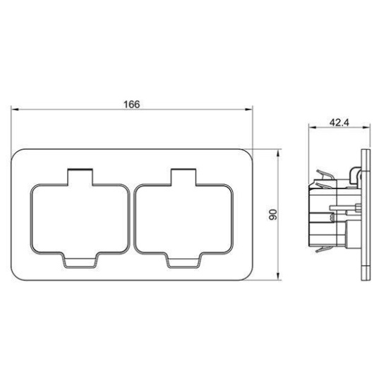 zásuvka dvojnásobná uzemněná 2x (2P+E), obdélníkový tvar
