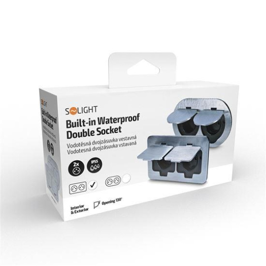 Solight vestavná podlahová dvojzásuvka, IP55, obdélníkové víčko