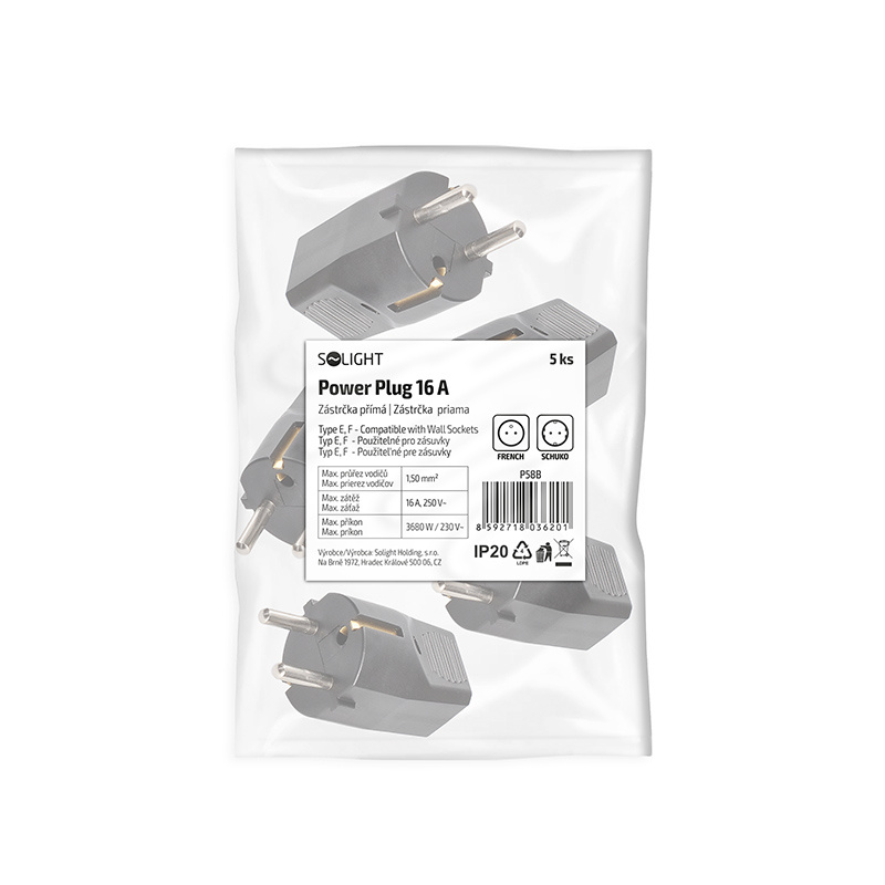 Solight zástrčka přímá, IP20, černá