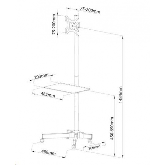 Stojan na monitory a Tv 19-37", regulace výšky, náklonu, Pivot, vedení kabeláže, pojezd s aretací Nová řada kvalitních stojanů na monitory a televizory za bezkonkurenční ceny. Stojan ErgoSolid Falco 22 je ideální pro zavěšení monitoru nebo televizoru s úhlopříčkou 19" až 37". Umožňuje regulaci výšky obrazovky, náklon, vedení kabeláže, funkce PIVOT, pojezd s aretací. Podpora VESA standardu 75x75 až 200x200mm. Nosnost 20kg. Součástí balení je polička na příslušenství. Barevné provedení černé. Záruka 2 roky. Stojan ErgoSolid Falco 22: kvalitní stojan na monitor nebo televizor 19-37 palců, nosnost 20kg Stojan ErgoSolid Falco 22: pohled na zadní stranu stojanu na monitor nebo televizor s úhlopříčkou až 37 palců Technické údaje: nosnost 20kg podpora VESA standardu 75x75 až 200x200 na monitory a televizory s úhlopříčkou 19" až 37" nastavení výšky obrazovky max. 1480mm možnost náklonu obrazovky 0° až -12° funkce PIVOT - otočení obrazovky horizontálně nebo vertikálně korekce roviny obrazovky kvalitní pojezdová kolečka s aretací polička na příslušenství s nosností 4kg rozměry poličky 485mm x 293mm systém vedení kabeláže snadná manipulace vynikající kvalita pěkný design barevné provedení černé záruka 2 roky.