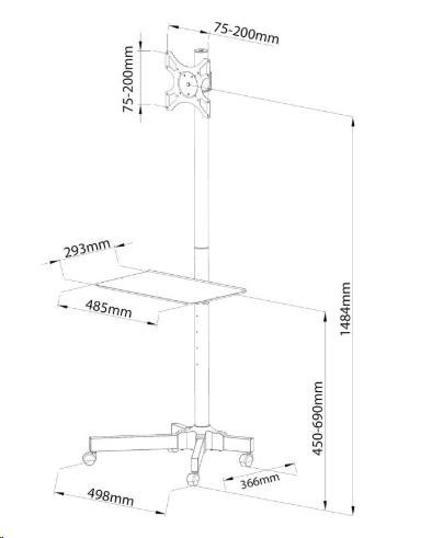 Stojan na monitory a Tv 19-37", regulace výšky, náklonu, Pivot, vedení kabeláže, pojezd s aretací Nová řada kvalitních stojanů na monitory a televizory za bezkonkurenční ceny. Stojan ErgoSolid Falco 22 je ideální pro zavěšení monitoru nebo televizoru s úhlopříčkou 19" až 37". Umožňuje regulaci výšky obrazovky, náklon, vedení kabeláže, funkce PIVOT, pojezd s aretací. Podpora VESA standardu 75x75 až 200x200mm. Nosnost 20kg. Součástí balení je polička na příslušenství. Barevné provedení černé. Záruka 2 roky. Stojan ErgoSolid Falco 22: kvalitní stojan na monitor nebo televizor 19-37 palců, nosnost 20kg Stojan ErgoSolid Falco 22: pohled na zadní stranu stojanu na monitor nebo televizor s úhlopříčkou až 37 palců Technické údaje: nosnost 20kg podpora VESA standardu 75x75 až 200x200 na monitory a televizory s úhlopříčkou 19" až 37" nastavení výšky obrazovky max. 1480mm možnost náklonu obrazovky 0° až -12° funkce PIVOT - otočení obrazovky horizontálně nebo vertikálně korekce roviny obrazovky kvalitní pojezdová kolečka s aretací polička na příslušenství s nosností 4kg rozměry poličky 485mm x 293mm systém vedení kabeláže snadná manipulace vynikající kvalita pěkný design barevné provedení černé záruka 2 roky.