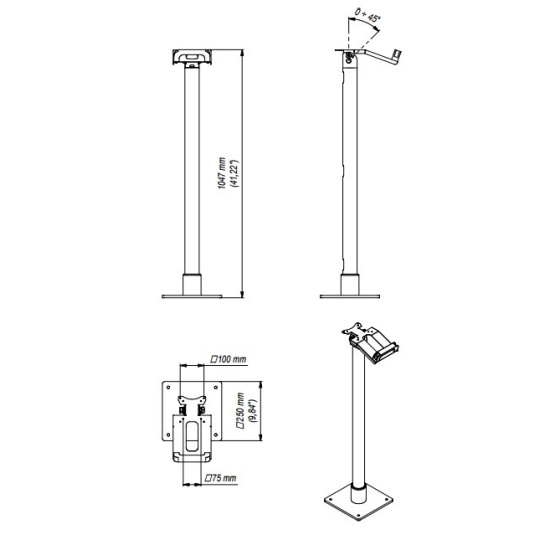 Stojan na monitory, Tv a dotykové displeje Edbak STD03 Podlahový stojan na monitory, Tv a dotykové displeje 15" až 43", výška 105cm, náklon obrazovky 0° až +45°, vedení kabeláže, nutné kotvení, VESA standardy 75x75 a 100x100, nosnost 10kg, záruka 10 let Profesionální podlahový stojan pro monitory nebo televizory s úhlopříčkou 15" až 43". Stojan má reprezentativní vzhled a je nejvyšší kvality, zpracování na nejvyšší úrovni. Nutné ukotvení do podlahy nebo podstavce. Stojan je vhodný jak na klasické, tak i dotykové obrazovky. Skryté vedení kabeláže tělem stojanu. Podporuje VESA standard 75x75 a 100x100, je možné zakoupit rozšíření na 200x100 nebo 200x200. Nosnost 10kg. Záruka 10 let. Podlahový stojan na monitor Tv nebo dotykový displej Edbak STD03 Technické údaje: nosnost 10kg na monitory, televize a dotykové displeje 15" až 43" podporuje VESA standardy 75x75 a 100x100 náklon obrazovky až 0° až +45° výška 1050mm systém vedení kabeláže nutnost ukotvení podstavce nejvyšší kvalita, profesionální výrobek barevné provedení: chromová tyč + podstavec s držákem černý záruka 10 let Naklápění monitoru displeje na stojanu Edbak STD03 Stojan na monitory a Tv Edbak STD03 podporuje VESA standardy: VESA 75x75 VESA 100x100 Vhodné využití: prezentace školy úřady kanceláře vstupní haly informační centra laboratoře nemocnice nabídka sortimentu prostřednictvím dotykových obrazovek.