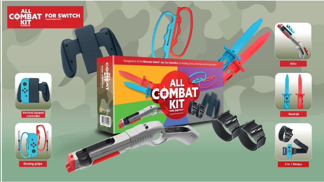 All Combat Kit je druhý z naší nové řady doplňků pro Switch a přináší stejnou zábavu jako All Sports Kit. Díky naší bojové sadě si naplno užijete celou řadu herních žánrů, jako jsou střílečky z pohledu první osoby, bojovky, fitness, sportovní hry a závody.