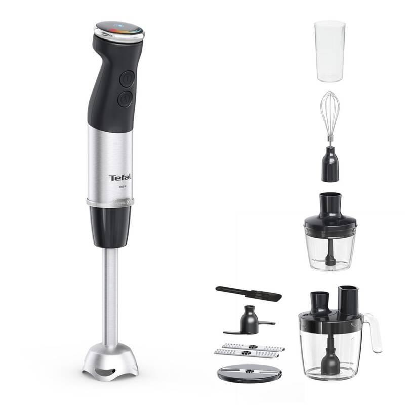 Ponorný mixér Tefal řady Quickchef+ je výborný pomocník do každé domácnosti. S příkonem 1 000 W, plynulou regulací rychlostí a turbo režimem je zaručeno vysoce výkonné mixování. Čepele Powelmix mají 4 ostré nože, s jejich pomocí rozmixujete ingredience rychle do požadované struktury. Ve výbavě je i odměrná nádoba s objemem 800 ml, šlehací metla a také sekací nástavec.