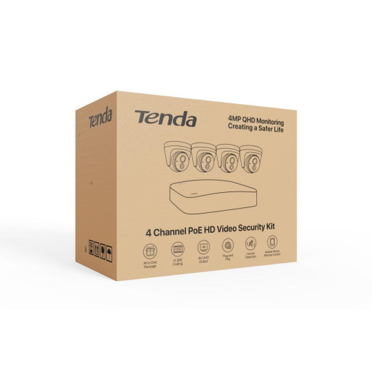 S kompletním setem Tenda K4P-4CR jednoduchým způsobem vytvoříte kamerové zabezpečení pro dům, chatu, firmu, sklad, obchod apod. Propojení kamer a rekordéru je pomocí Ethernetového kabelu a rekordér kamery pomocí PoE sám napájí. Lze vzdáleně online sledovat veškeré prostory, které jsou pokryty kamerami. Po jednoduchém zapojení a snadném nastavení je systém v plném provozu a online dostupný. Set obsahuje 4 ks kvalitních 4MP kamer které jsou již připárované k rekordéru.
