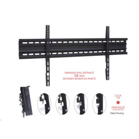 Velmi kvalitní fixní držák na středně velké a velké LCD plazmové LED televizory. Držák je velmi kvalitní a uspokojí i nejnáročnější zákazníky.     Technické údaje:  nosnost 60kg vzdálenost od zdi jen 28mm vhodný na TV, monitory a displaye 40" - 85" VESA standardy 100x100 až 800x400 vysoká kvalita snadná montáž barva černá záruka 5 let    Držák podporuje VESA standardy:  VESA  100x100 VESA 200x100 a 100x200 VESA 200x200 VESA 300x100 a 100x300 VESA 300x200 a 200x300 VESA 300x300 VESA 400x200 a 200x400 VESA 400x300 a 300x400 VESA 400x400 VESA 500x300 VESA 600x400 VESA 800x400    Držák OMB Slim 800 je ideální pro zavěšení všech televizí, monitorů a signage display s hmotností do 60kg a VESA standardy v rozmezí 100x100 až 800x400. Úhlopříčka není podstatná..