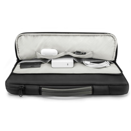 Společnost Tomtoc ví, že brašna na notebook by především měla plnit funkci ochrany přenášeného zařízení. Nic neponechala náhodě a spodní rohy brašny pevně vyztužila, aby ani při prudkých nárazech a pádech z větší výšky nedošlo k jeho poškození. Vnitřek kapsy je po všech stranách podšit měkkou flísovou vložkou a zip obepíná zvýšený flísový límec, který brání před jakýmkoli poškrábáním zařízení. Při cestách v přeplněných dopravních prostředcích oceníte boční rozepínání, které znesnadní odcizení při potenciálním pokusu o krádež.