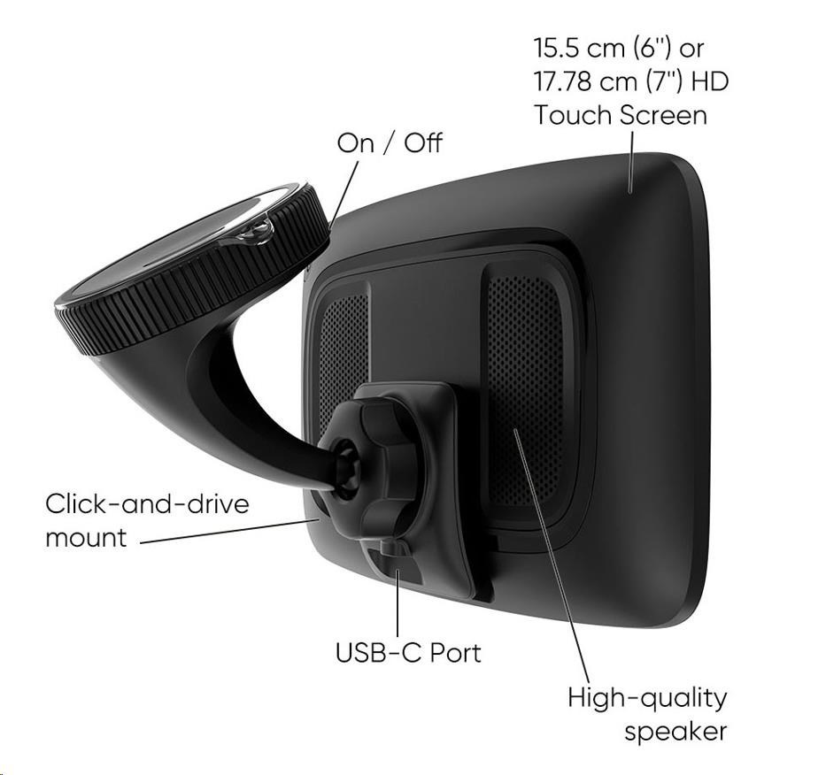 Prohlédněte si svou trasu ve velmi vysokých detailech na 6" / 7" dotykovém displeji, který se může pochlubit nejlepším rozlišením na trhu. A díky ovládání pomocí hlasových příkazů můžete zařízení TomTom GO Superior ovládat, aniž byste museli dát ruce z volantu. Snadno použitelný držák Click-and-Drive navíc drží navigační zařízení bezpečně na místě.