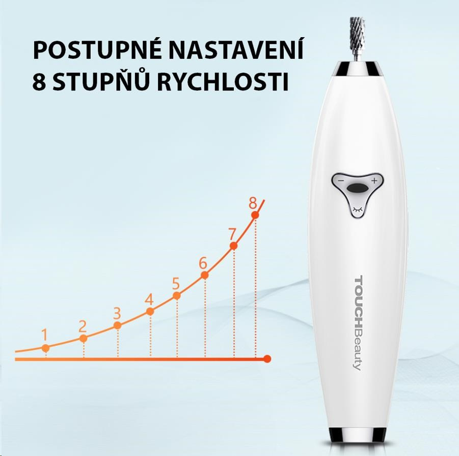 Sada na manikúru a pedikúru TOUCHBeauty 1733 je vhodná pro tvarování, opravy, broušení, leštění a vyhlazování nehtů. Nabízí dokonce 6 různých nástavců, vysoký výkon až 12 000 ot./min., který se nastavuje v 8 rychlostních stupních, a cestovní magnetické pouzdro na nástavce. Kombinace integrované baterie a USB nabíjení přispívá k Vašemu pohodlí a zároveň představuje ekologičtější variantu k přístrojům, které používají tužkové baterie. Díky obousměrné 360° rotaci je bruska vhodná pro praváky i leváky.