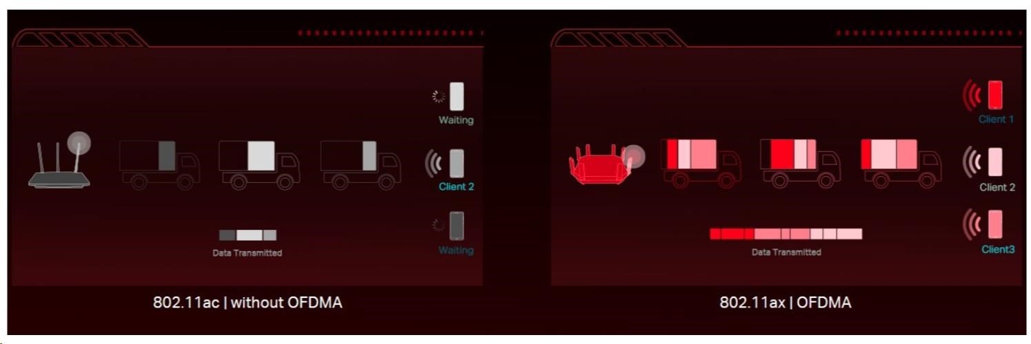 - Bezkonkurenční rychlost Wi-Fi 6 - překonává gigabitovou bariéru rychlostí až 2402 Mb/s (5 GHz) + 574 Mb/s (2,4 GHz)