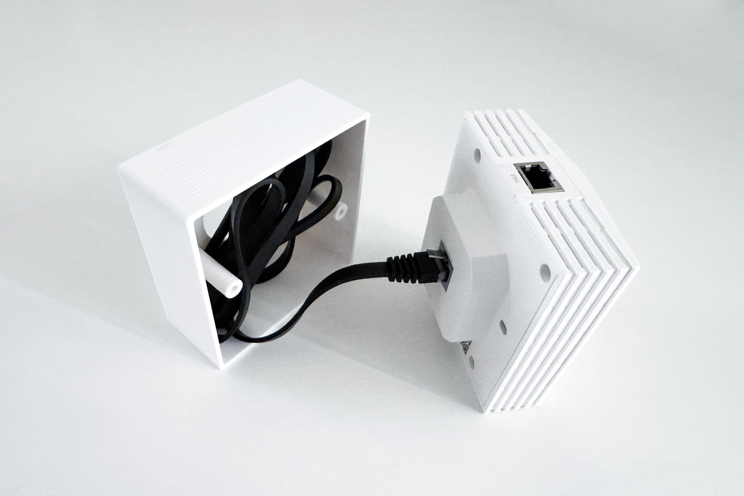 Plastový montážní box je určen pro zakrytí kabelů a připevnění nástěnného WiFi EAP a vypínačů Tapo EAP115-Wall, EAP230-Wall, EAP650-Wall, Tapo S210, Tapo S220 od TP-Linku ke stěně pomocí dvou šroubů. Držák je vyroben z materiálu PETG na 3D tiskárně, je bílé barvy.