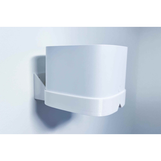 Plastový držák na stěnu pro TP-Link DHX510, HX520 na stěnu a to pomocí dvou šroubů. Držák je vyroben z PETG materiálu na 3D tiskárně a má bílou barvu.