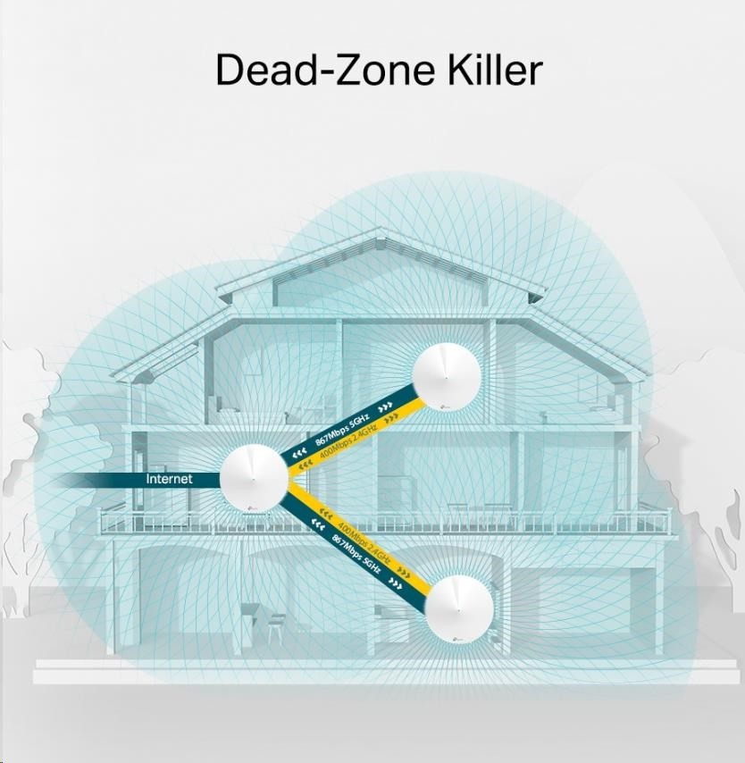 - Koncept Deco využívá systém více jednotek současně, které zajistí bezproblémové pokrytí signálem Wi-Fi a přecházení mezi jeho jednotlivými částmi v rámci celého domu – zbavte se míst se slabým signálem jednou provždy!