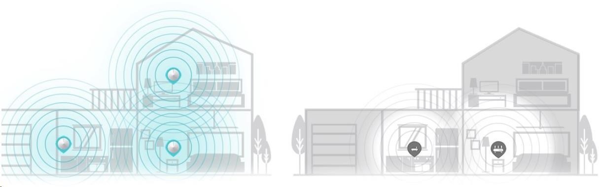 - Koncept Deco využívá systém více jednotek současně, které zajistí bezproblémové pokrytí signálem Wi-Fi a přecházení mezi jeho jednotlivými částmi v rámci celého domu – zbavte se míst se slabým signálem jednou provždy!