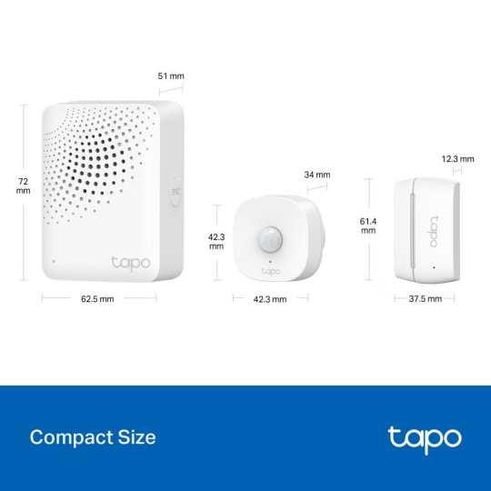 | Package Contents | Tapo H100 × 1 Tapo T100 × 1 Tapo T110 × 2 Button Battery CR2450 × 1 Button Battery CR2032 × 2 3M Adhesives × 7 Quick Start Guide |