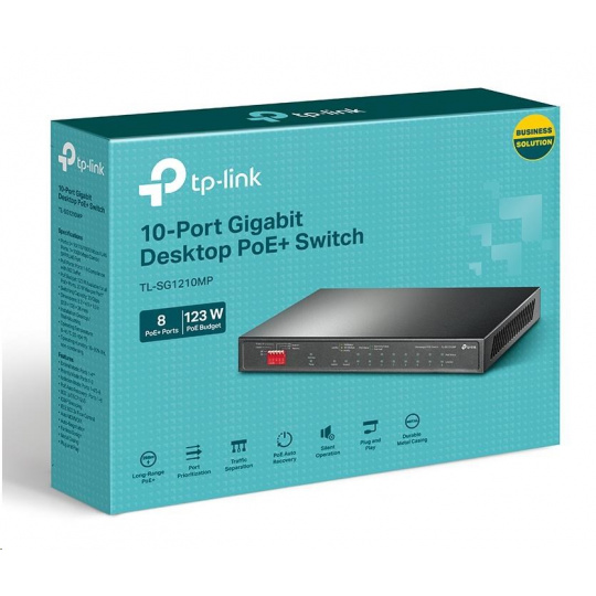 TP-Link CCTV switch TL-SG1210MP (8xGbE, 1xGbE uplink, 1xGbE/SFP combo uplink, 8x PoE+, 123W, fanless)