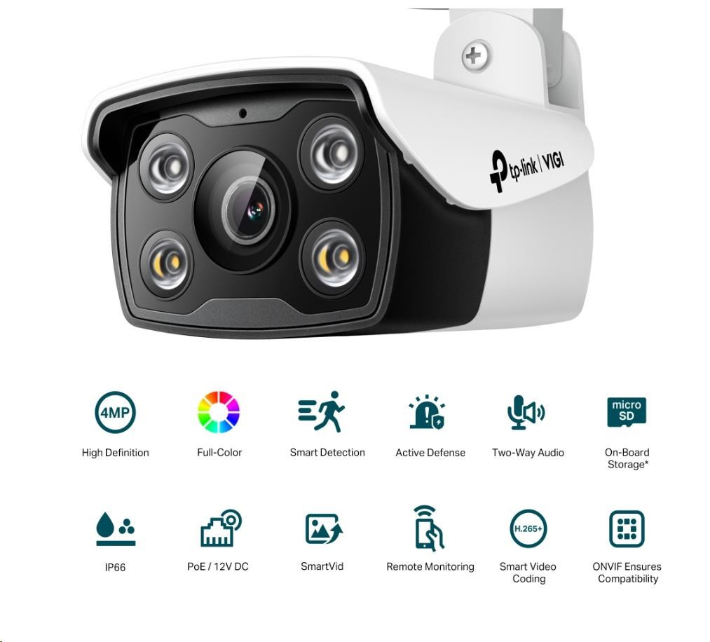TP-Link VIGI C340(4mm), 4MP, Bullet, IR 30m, Micro SD card