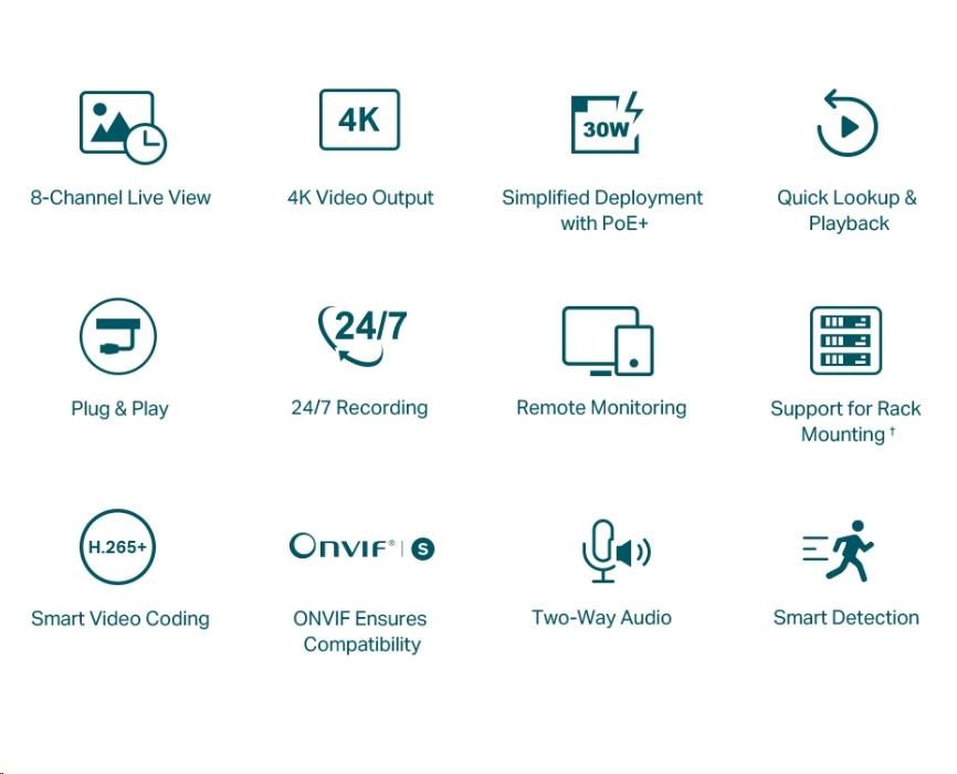 - Plug & Play: Umožňuje automatické přidávání nových a nepoužitých IP kamer VIGI do nového NVR a okamžitou aktivaci, takže instalace je rychlejší než kdykoli předtím.